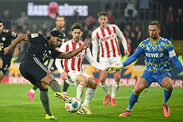 Domácí sice do utkání vstupovali jako výrazní outsideři, ale od úvodních minut ukazovali odhodlání, když například Said El Mala už po 90 vteřinách donutil Manuela Neuera k zákroku. Krátce nato byl zápas přerušen kvůli dýmu z pyrotechniky na tribunách, ale zatímco kouř postupně mizel, Kolín se nevzdával. Linton Maina poslal do vápna nebezpečný centr, který hosté jen s obtížemi odvrátili. Bayern si ale také vytvářel šance, Marvin Schwäbe vychytal Hirokiho Ita i Michaela Oliseho a poté vytáhl i prudkou střelu Serge Gnabryho mimo tři tyče.