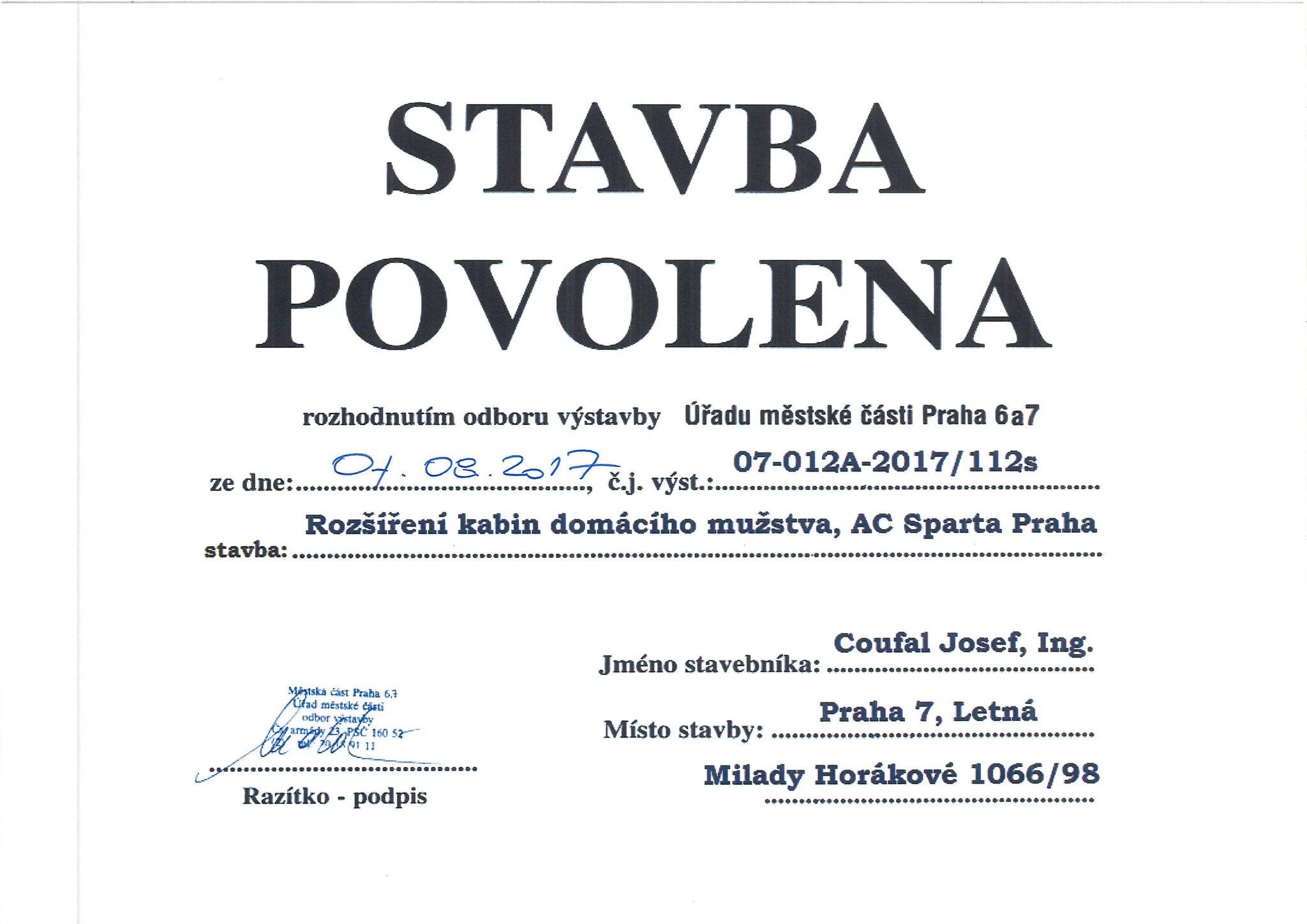 Bude na 3 roky jen když Sparta jde na liga mistrů