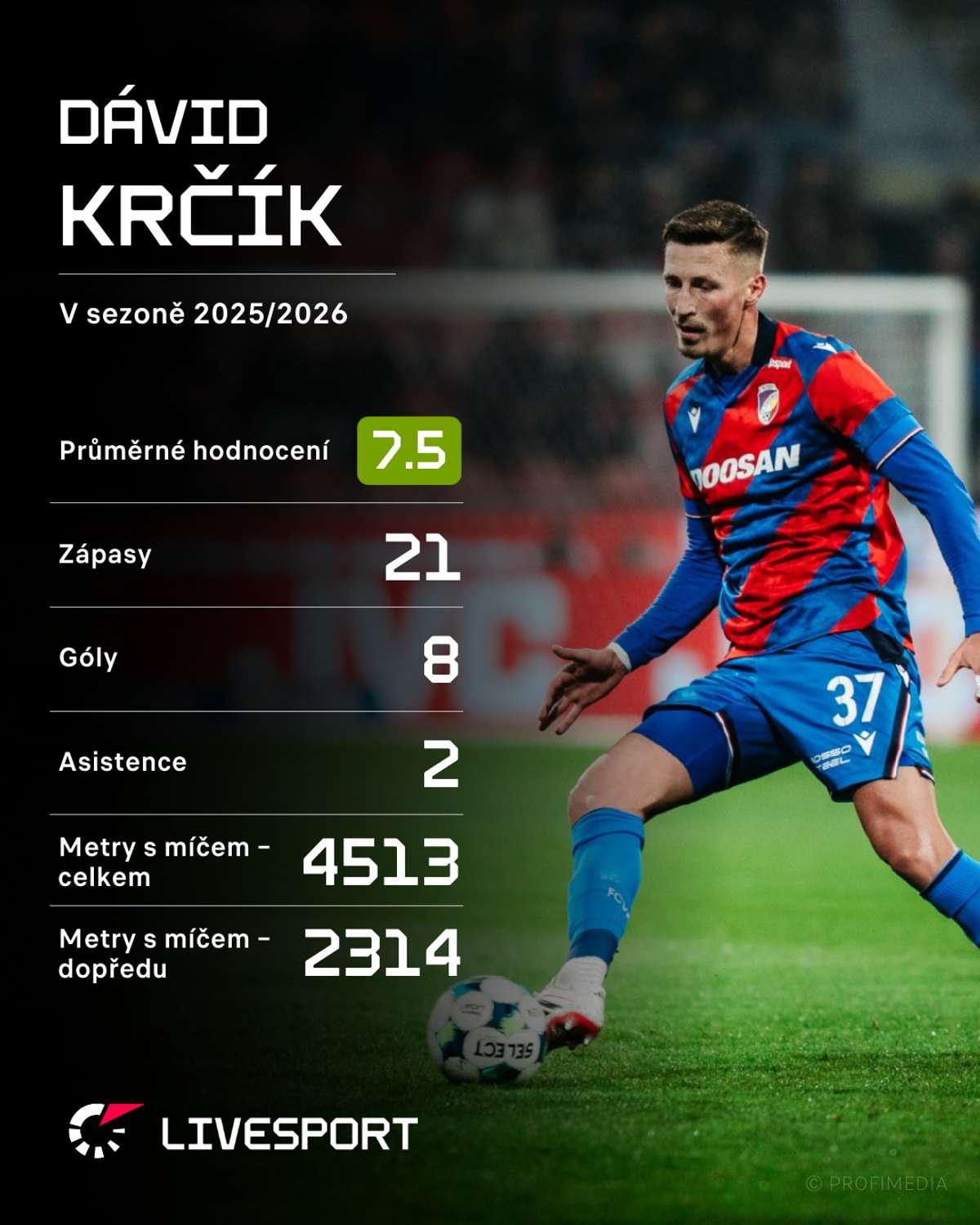 Tomáš Chorý, Lukáš Haraslín a Daniel Vašulín. Nikdo jiný v úvodních dvaadvaceti kolech Chance Ligy nenastřílel více branek než Dávid Krčík (26). Plzeňský stoper se v aktuálním ročníku nejvyšší soutěže prosadil už osmkrát a žene se za rekordním zápisem Ladislava Krejčího. Další krok k jeho překonání by rád udělal symbolicky v nedělním duelu proti Spartě.