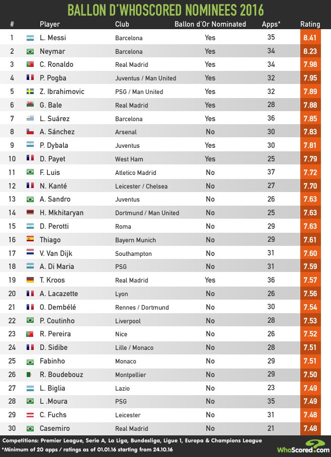 Naproti tomu Griezmann (nič proti nemu, skvelý hráč a mám ho rád) dá v 38 zápasoch takmer o polovicu menej gólov a 3krát menej prihrávok ako Suarez, jeho tím nevyhrá nič a napriek tomu je vyhlásený najlepším hráčom, aj keď jeho konkurent na prakticky rovnakej pozícii má minimálne dvakrát lepšie indivuálne štatistiky a titul k tomu.