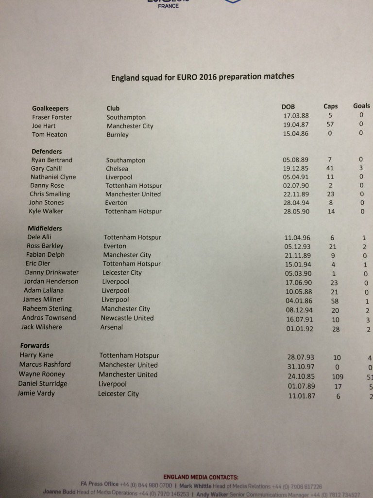 Goalkeepers: Hart, Forster, Heaton