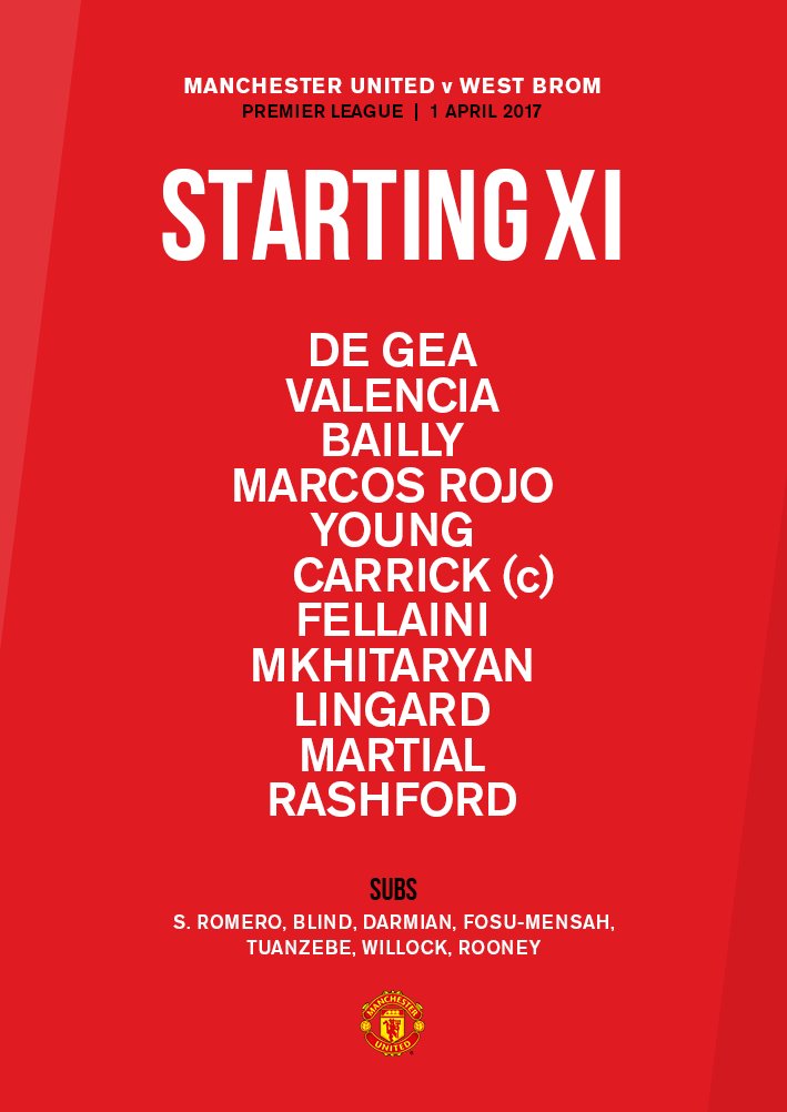 De Gea - Valencia, Bailly, Rojo, Blind - Carrick - Lingard, Mata, Mchitarjan, Martial - Rashford