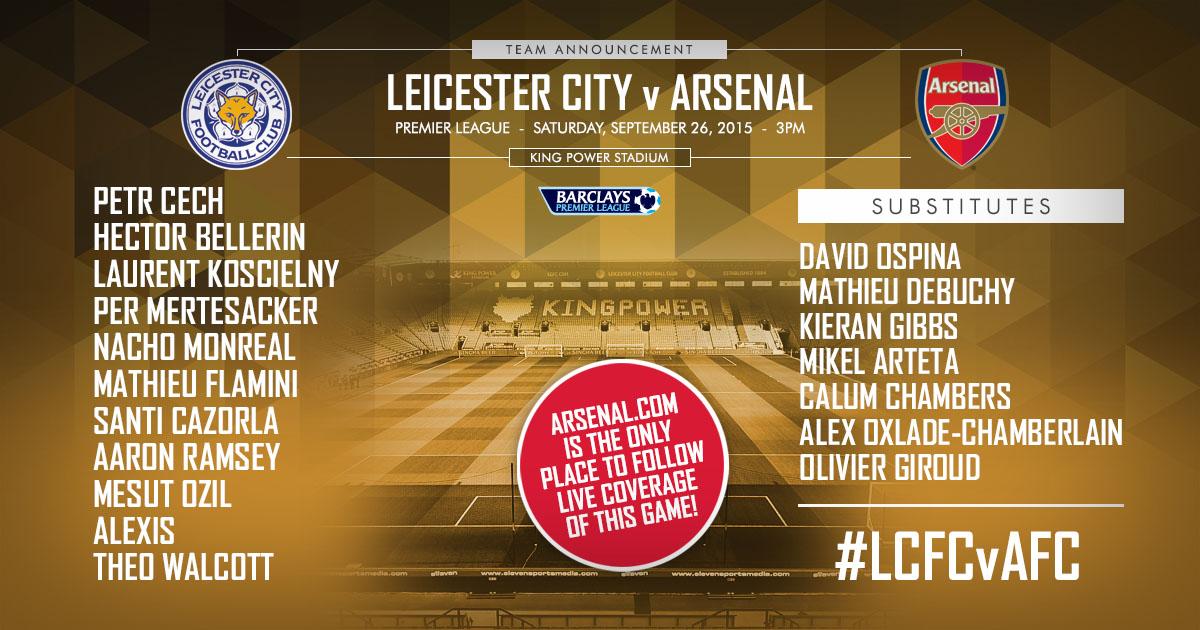 Leicester City - pravděpodobná sestava:Výkony Gunners jsou zatím trochu jako na houpačce. Když už se po nezdaru s West Hamem zdálo, že tým najel na vítěznou vlnu, přišla překvapivá porážka v Lize mistrů s Dinamem Záhřeb a krátce nato pak i na Stamford Bridge. Nicméně ve středu fanoušky zcela jistě potěšila výhra na White Hart Lane proti nesmiřitelnému rivalovi Tottenhamu, i když šlo "pouze" o ligový pohár.