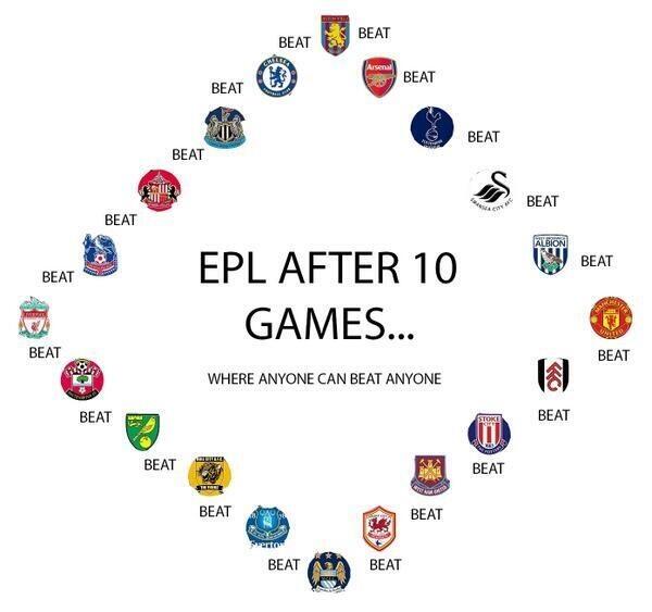 Arsenal doma porazil Liverpool a navýšil svůj náskok na čele tabulky, jelikož Chelsea prohrála v Newcastlu a Everton remizoval s Tottenhamem. Manchester City sedmi góly rozprášil Norwich, United si odvezli body z Fulhamu. Stoke k výhře nad Southamptonem nepomohl ani rychlý gól brankáře Begoviće, WBA zdolalo Crystal Palace.