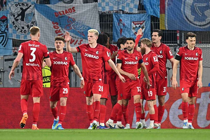 Freiburg se do čtvrtfinále evropského poháru probojoval poprvé v historii, když v předchozím kole vyřadil Genk. O víkendu byl navíc blízko senzačnímu skalpu suverénního lídra Bundesligy Bayernu Mnichov, ale v nastavení dvakrát inkasoval a prohrál 2:3. Proti Celtě bylo na domácích znát, že chtějí napravit ztracený náskok z posledního zápasu, a od úvodních minut španělského soupeře jasně přehrávali. První šanci měl Igor Matanovič, který již ve druhé minutě hlavou přestřelil bránu. Ionut Radu následně zlikvidoval tvrdou střelu Maximiliana Eggesteina.