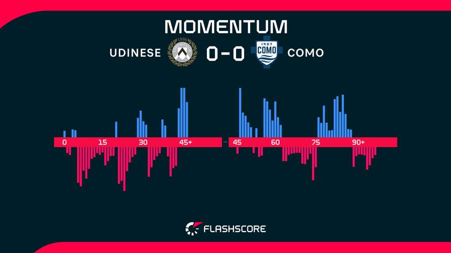 Hosté mohli udeřit čtvrthodinu před koncem, kdy se do centru položil na hraně malého vápna Sergi Roberto, avšak jeho hlavička skončila nad břevnem. Utkání tak dospělo do nerozhodného konce. Como má díky bodu jistotu setrvání v elitní čtyřce i po konci kola, Udinese si upevnilo 11. příčku.